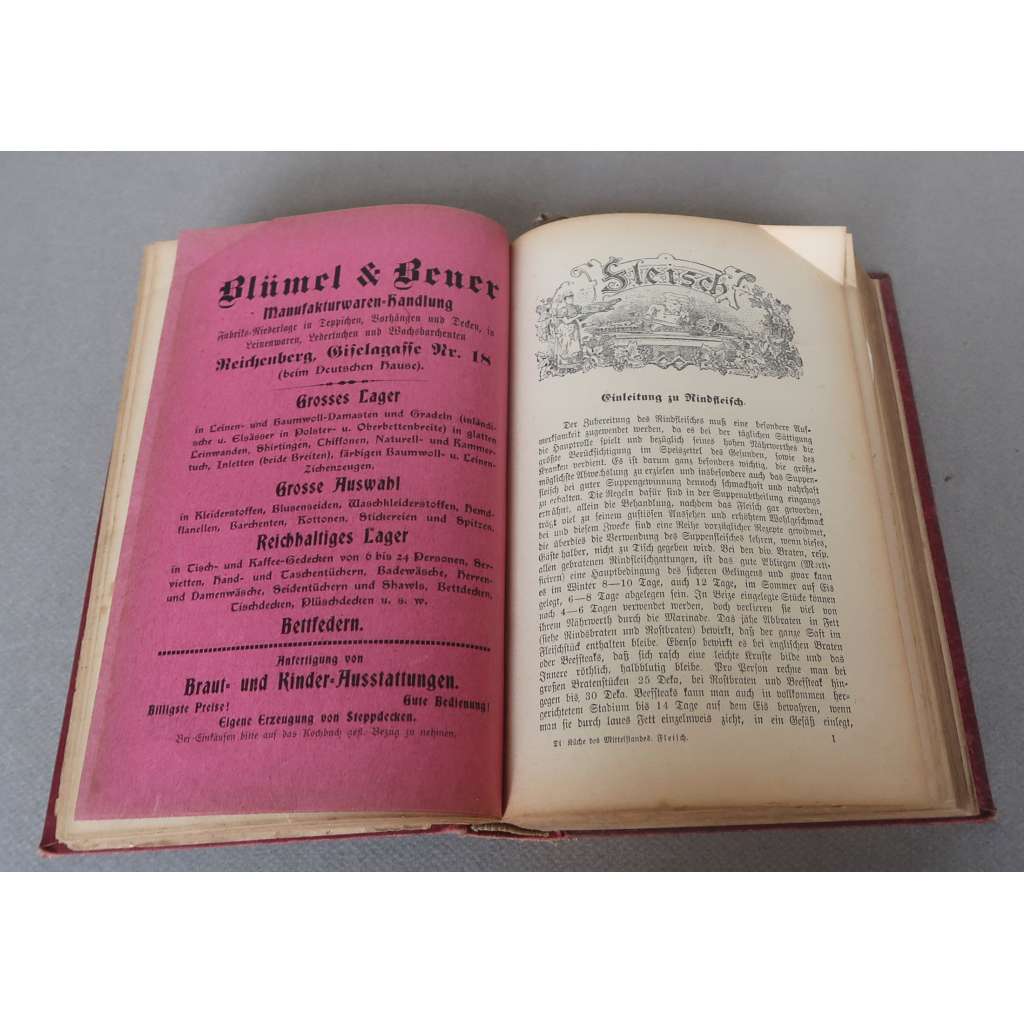 Die Küche des Mittelstandes. Neues illustriertes Wiener Kochbuch für jeden Haushalt [nová ilustrovaná Vídeňská kuchařka, středostavovská kuchyně, recepty, reklamy - Liberec / Reichenberg]