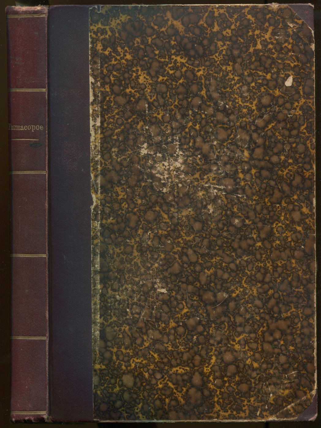 Dobrý stav; kůže opotřebovaná, s menší prasklinou a drobnou ztrátou, desky mírně prohnuté, rohy mírně odřené, předsádky silněji zažloutlé, zadní předsádka chybí, na předním přídeští je stará signatura