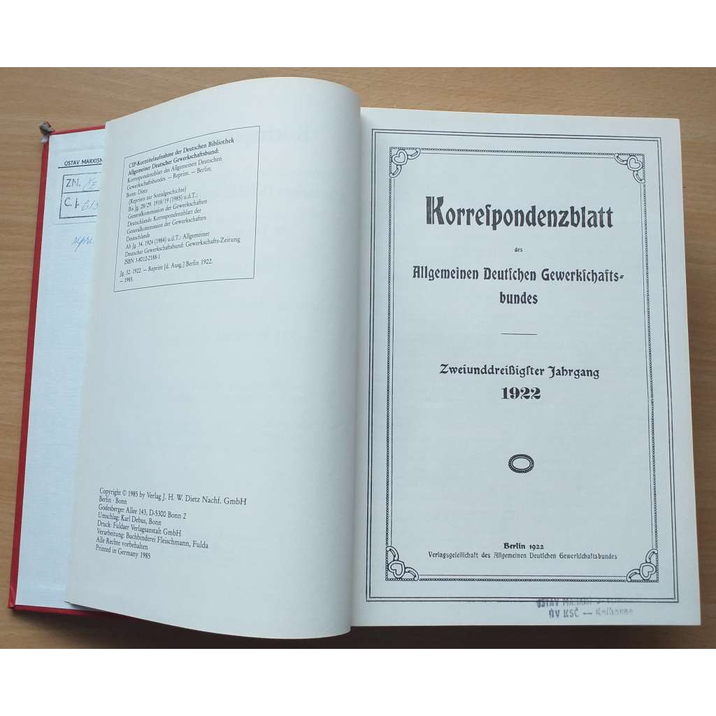Korrespondenzblatt des Allgemeinen Deutschen Gewerkschaftsbundes; 32. Jahrgang 1922, Nr. 1-52 [odbory]
