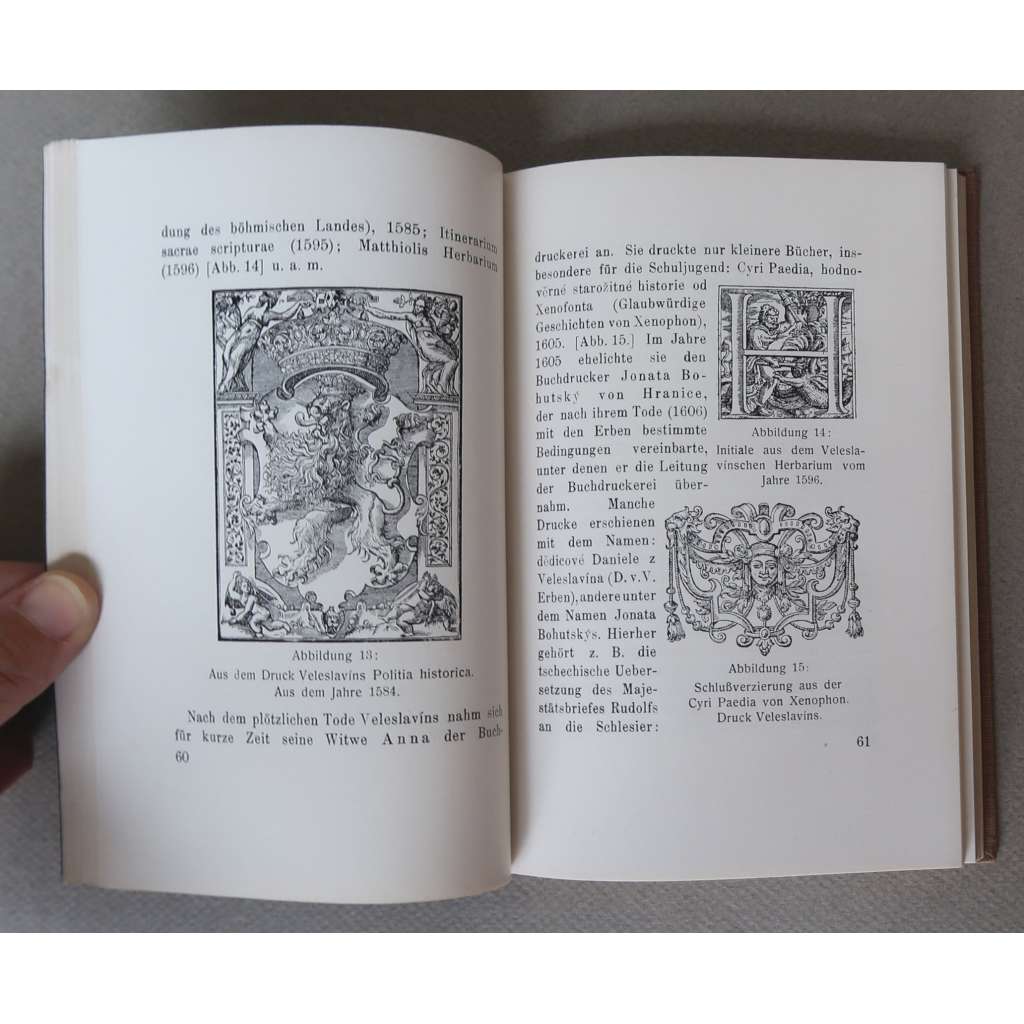 Původní celoplátěná vazba s černou ražbou, modrá horní ořízka, 262 stran, 41 černobílých vyobrazení, 8° (13 x 19 cm).
