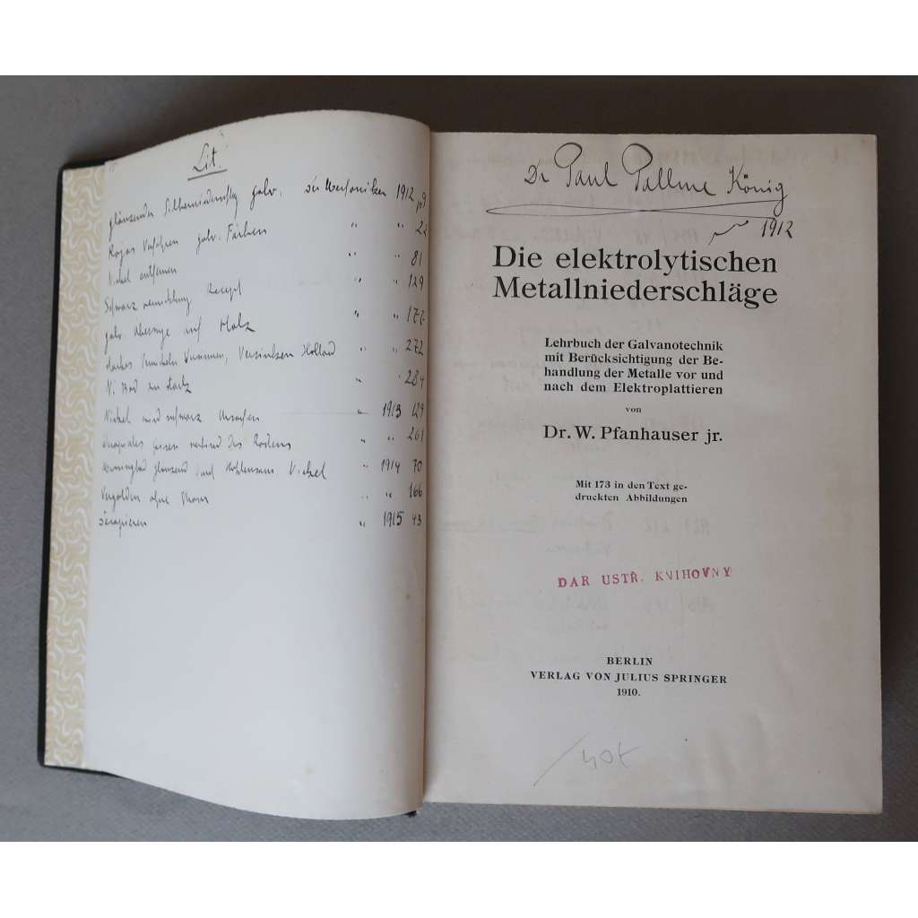 Vydání: Berlin: Verlag von Julius Springer 1910, V. Auflage.