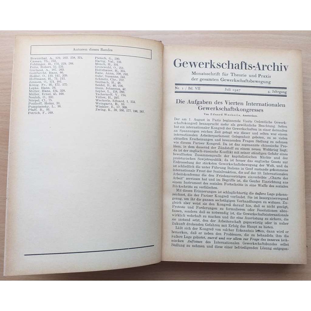 Gewerkschafts-Archiv; Vierter Jahrgang - Band VII, 2. Halbjahresband 1927, Nummer 1-6 [odbory]