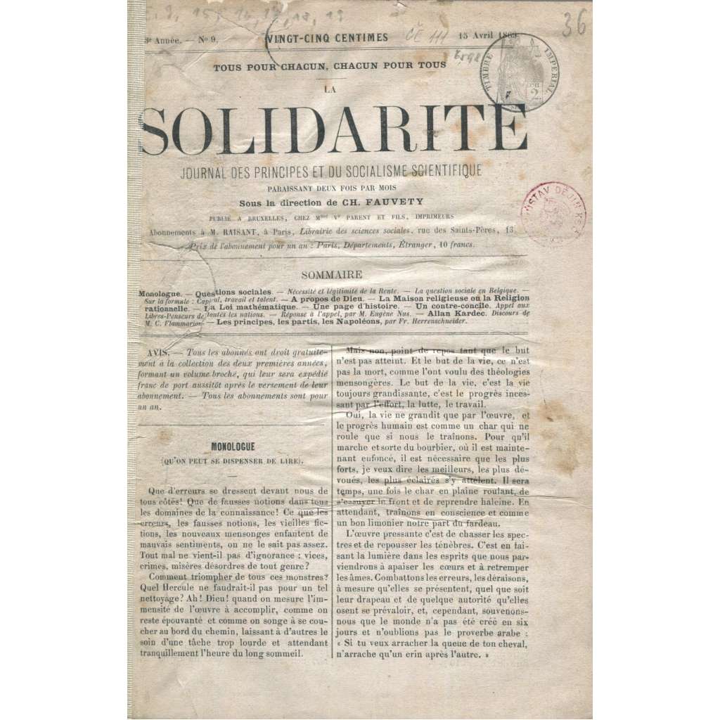 La Solidarité, roč. 3, 1869, č. 9, 11, 15-19 [socialismus; Francie; 19. století; časopis]