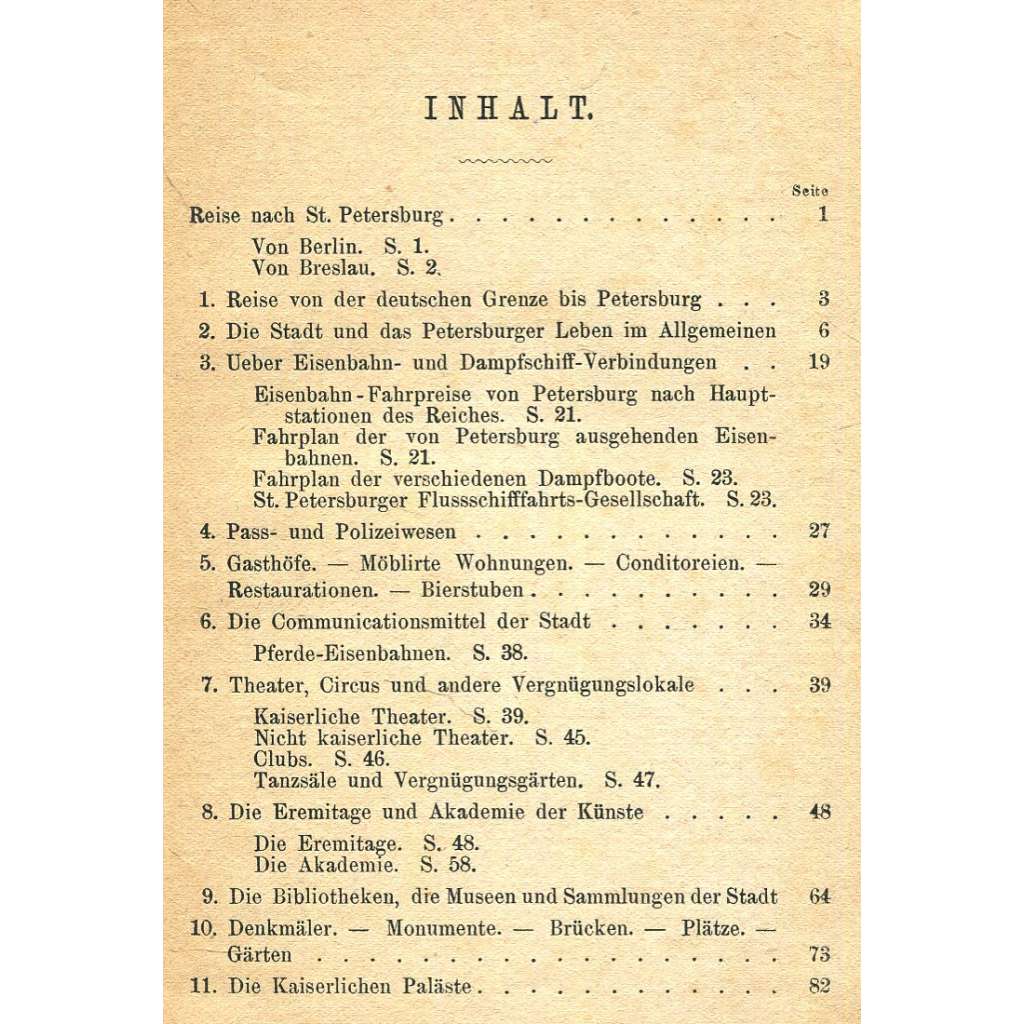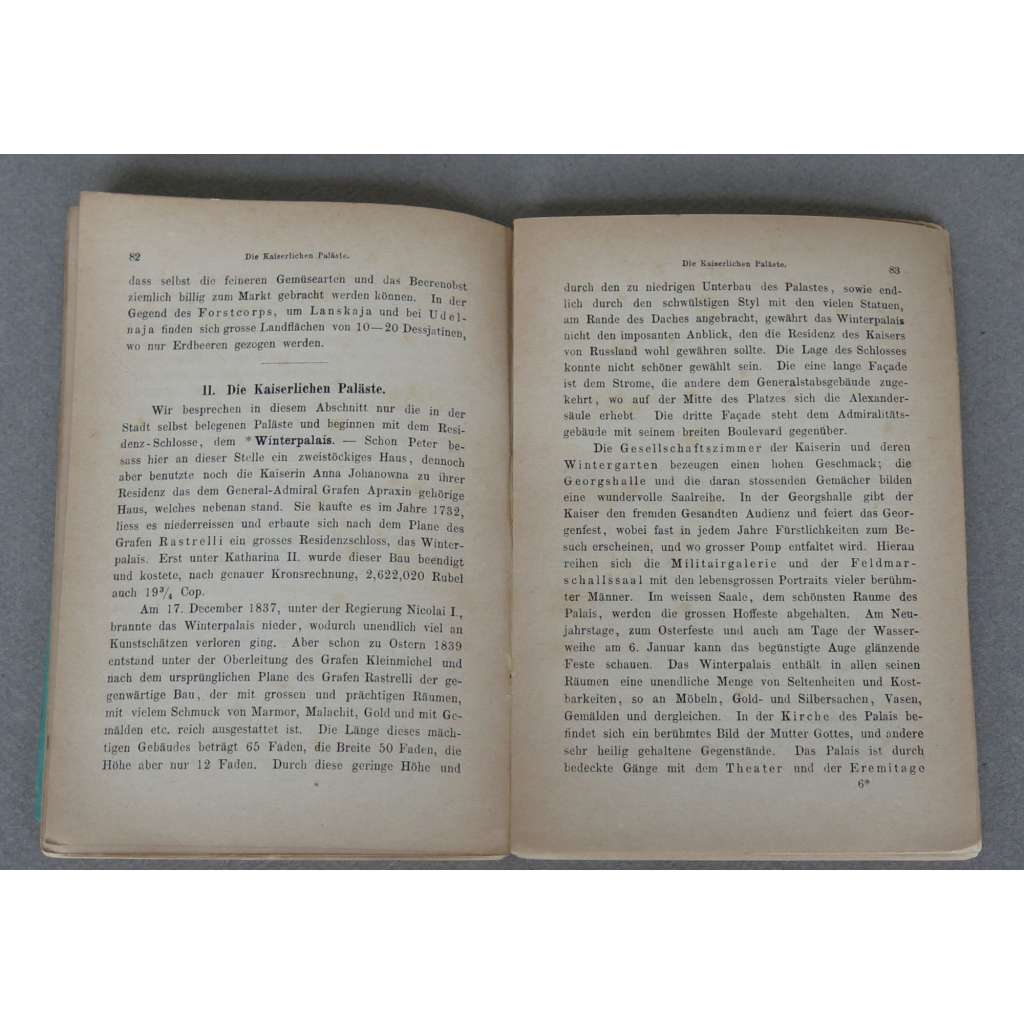 Podrobný průvodce Petrohradem a okolím; 9. vydání. Viz naskenovaný obsah. Chybí mapa. Vyšlo jako 27. svazek "Grieben's Reise-Bibliothek".