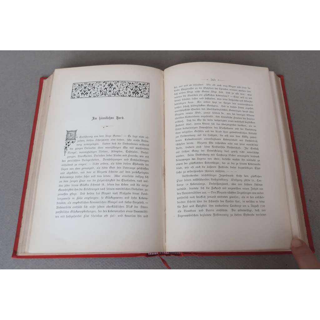 Původní plátěná vazba, bohatě zdobená, černě a zlatě ražená na předních deskách a hřbetu, černá ražba na zadní straně desek, XVI+505 stran, 2 portréty - oceloryty (jeden z nich jako frontispice), 8° (15 x 22 cm).