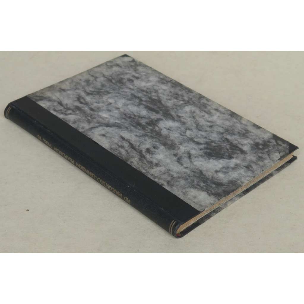 Stav knihy: Dobrý stav; na zadní desce je nalepen štítek, na ořízce jsou drobné žluté skvrnky od stáří, předsádky s razítky a signaturou, na původní obálce a několika stránkách jsou další razítka knihoven či signatura psaná perem.