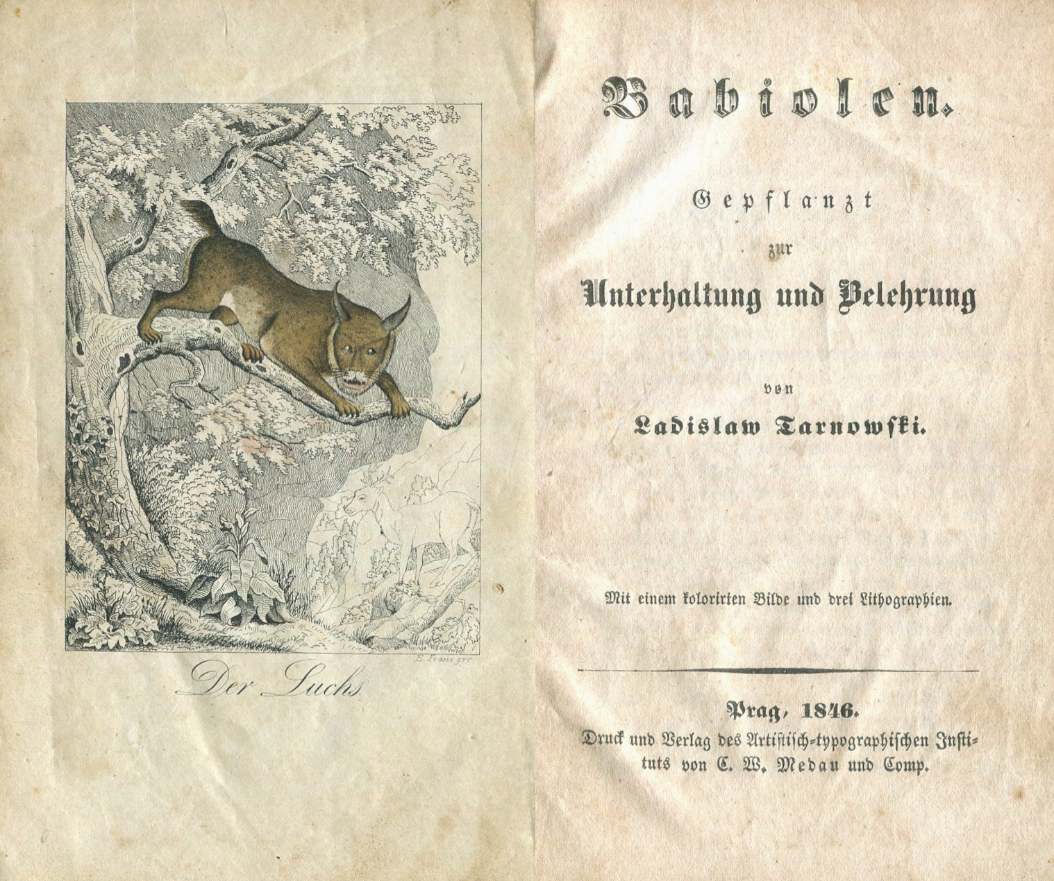 Prag: Druck und Verlag des Artistisch-typographischen Instituts von C. W. Medau und Comp. 1846, váz., 119+[1] s., 4 přílohy, 8° (11,5 x 17,5 cm)