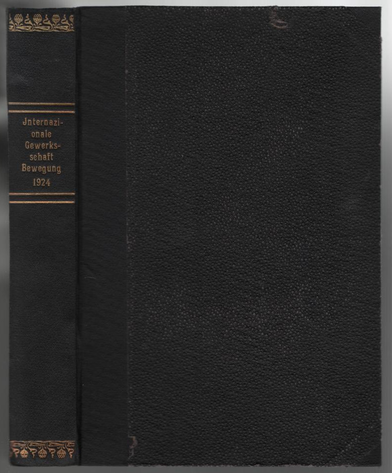 Amsterdam: Internationaler Gewerkschaftsbund 1924. Poloplátěná vazba se zlaceným titulem na hřbetu a zdobenou ořízkou, jedna vevázaná pův. obálka, 398 stran, 4° (16 x 24 cm)
