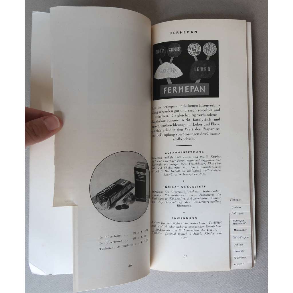 Katalog léčiv německé farmaceutické firmy Troponwerke z období Protektorátu.