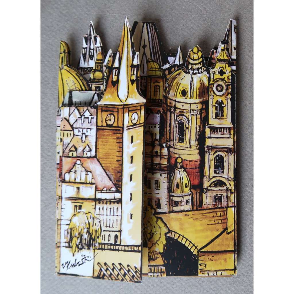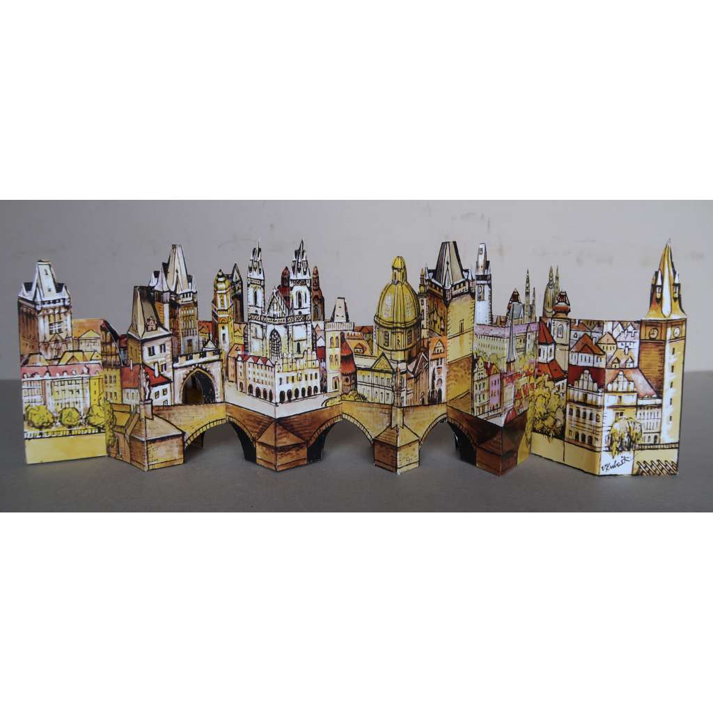 Rozkládací papírové panorama Karlova mostu a ikonických pražských malostranských a staroměstských staveb od Vojtěcha Kubašty.