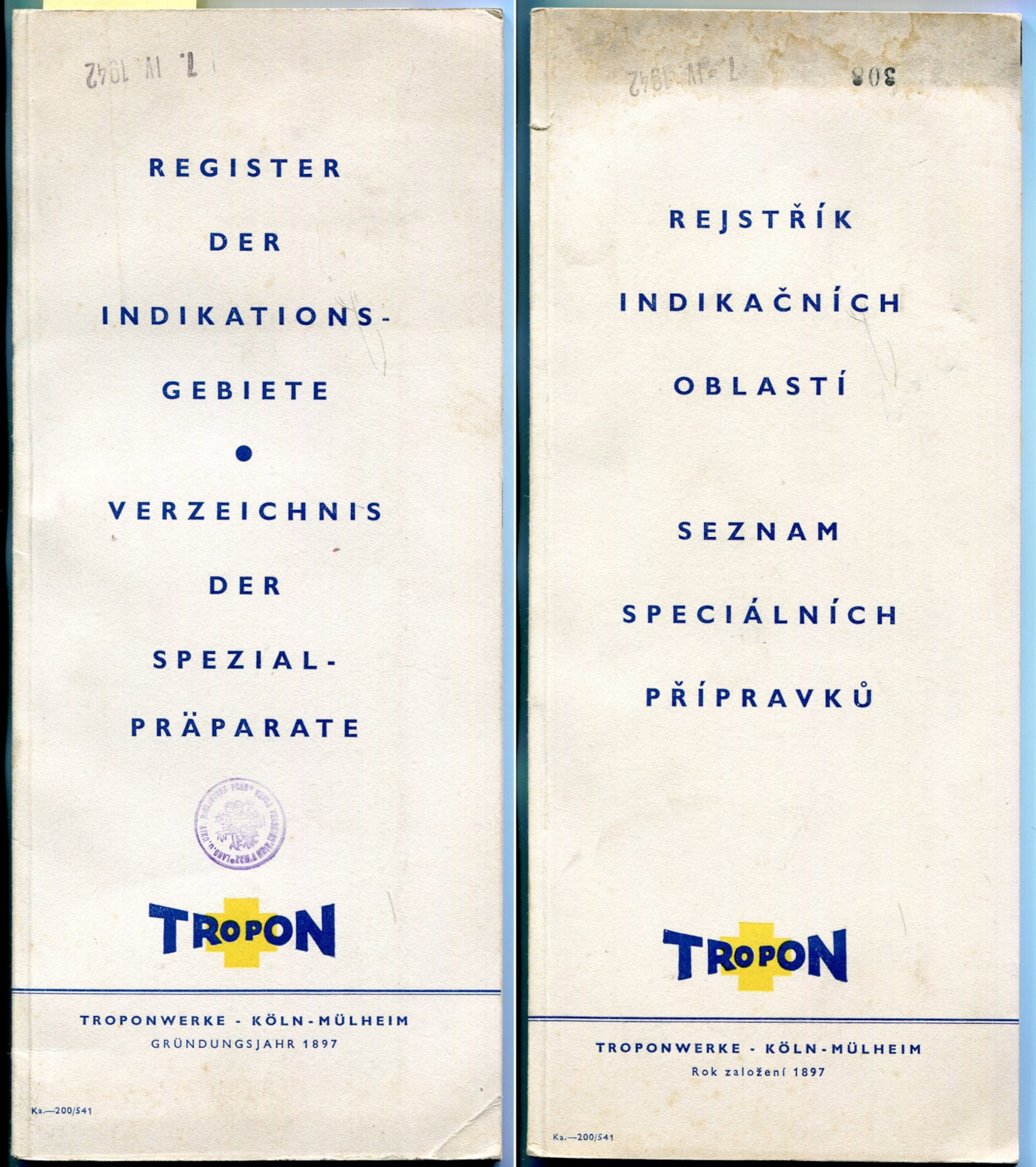 ![Tropon: Register der Indikationsgebiete – Verzeichnis der Spezialpräparate / Rejstřík indikačních oblastí, seznam speciálních přípravků [léčiva značky Tropon, lékárenství, farmacie během druhé světové války] Tropon: Register der Indikationsgebiete – Verzeichnis der Spezialpräparate / Rejstřík indikačních oblastí, seznam speciálních přípravků [léčiva značky Tropon, lékárenství, farmacie během druhé světové války]](http://www.valentinska.cz/image/cache/data/pa/754651-tropon-register-der-indik-17611205811-1024x1024.jpg)