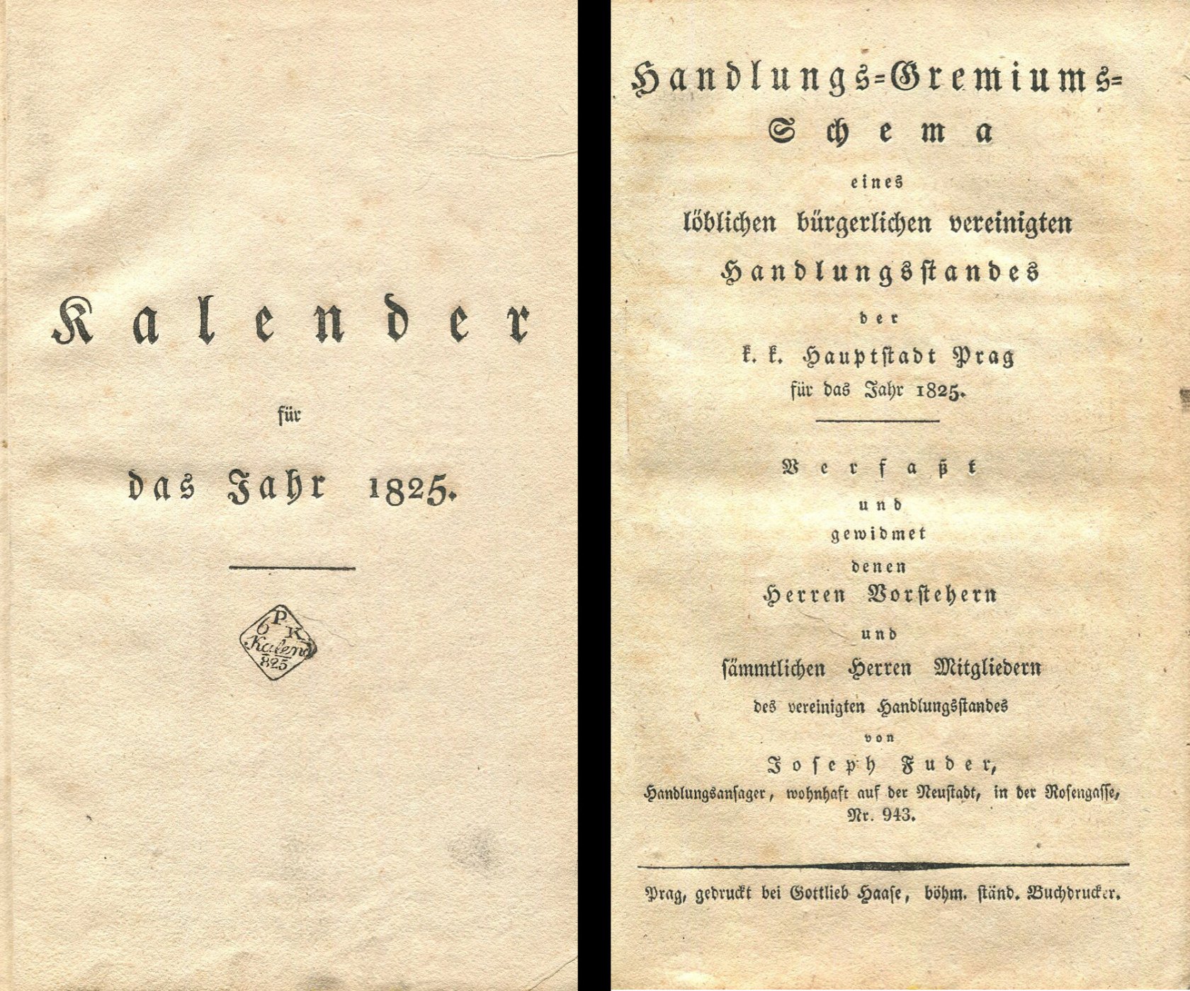 Desky trochu zahnědlé, horní okraj "české" strany desek zašpiněný a skvrnitý, na obou deskách razítka (datumovky, na "německé" straně desek razítko knihovny), uvnitř zcela bez pošk