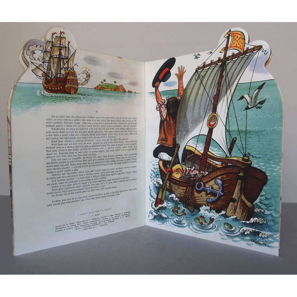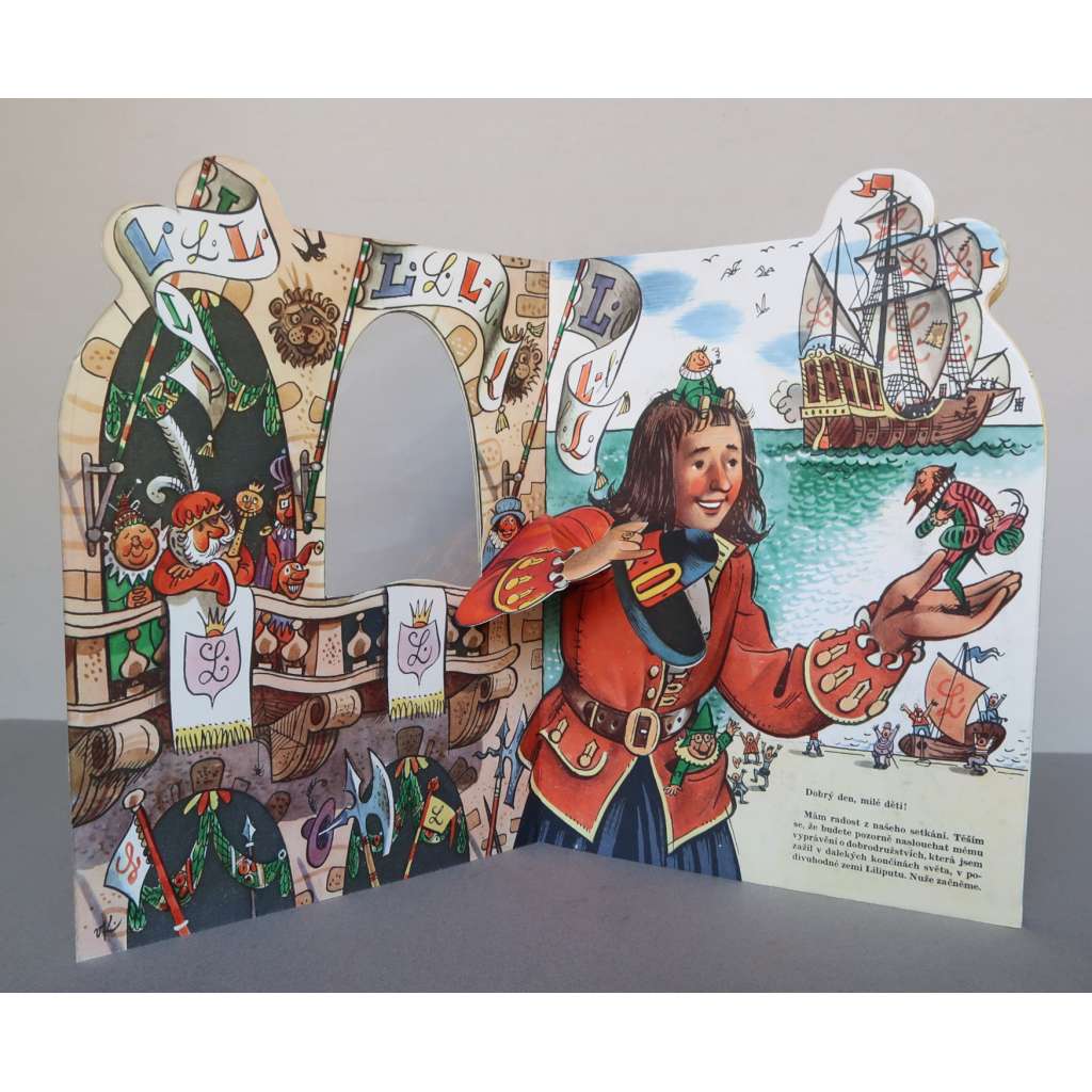 Gulliver V Liliputu [dětské knihy, dobrodružné příběhy, pop-up kniha, prostorová publikace, dětská knižní ilustrace, Vojtěch Kubašta - autorský výtisk]