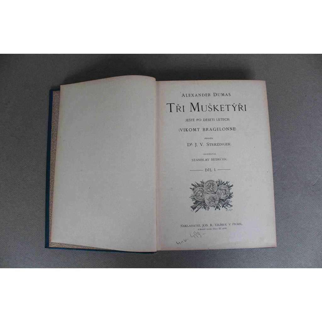 Tři Mušketýři ještě po deseti letech (Vikomt Bragelonne) 4. svazky (historický román, Francie, dobrodružství; secesní vazba; ilustrace Stanislav Hudeček)