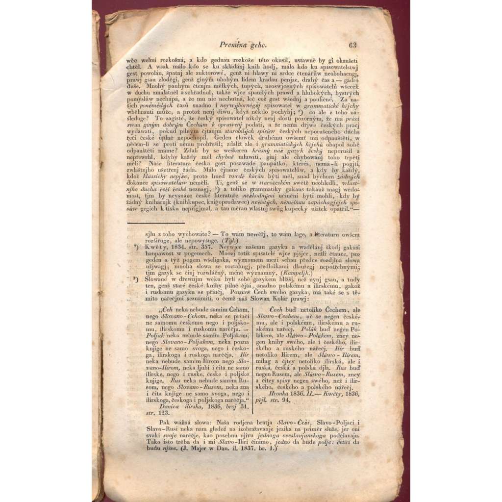 Nabízíme první ze čtyř sešitů publikace Auplný literaturnj létopis, čili obraz slowesnosti Slowanůw nářečí českého w Čechách, na Morawě, w Uhřjch, od léta 1825 až do I. 1837. Praha 1837. Původní sešit s obálkou, 8°, 96 stran a uvnitř je obří rozkládací příloha, tzv. imperiální arch formátu A0 se synchronním přehledem literárního vývoje obrozenských Čech (Přehled literatury slowanské nářečj...), který ve většině výtisků chybí. Upozorňujeme, že text knihy je zde jen do strany 96, tj. není celý, tři čtvrtiny ho chybí, vyšly ve zbylých třech sešitech.