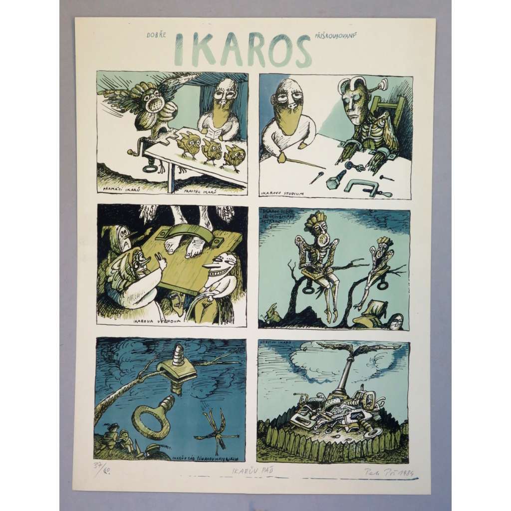 Barevná litografie Petra Poše z roku 1984. Podepsaná, číslovaná.
