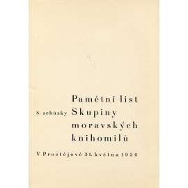 Pamětní list 8. schůzky Skupiny moravských knihomilů v Prostějově (1x grafika Alois Fišárek - suchá jehla) [Prostějov]1936]
