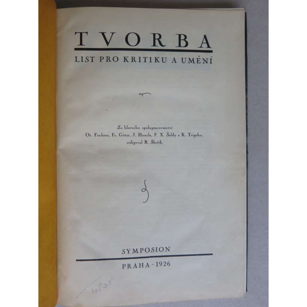 Svázaný ročník časopisu, 249 stran, formát A4, 28 cm, dobová poloplátěná vazba. Uvnitř mj. několik článku Karla Teigeho.