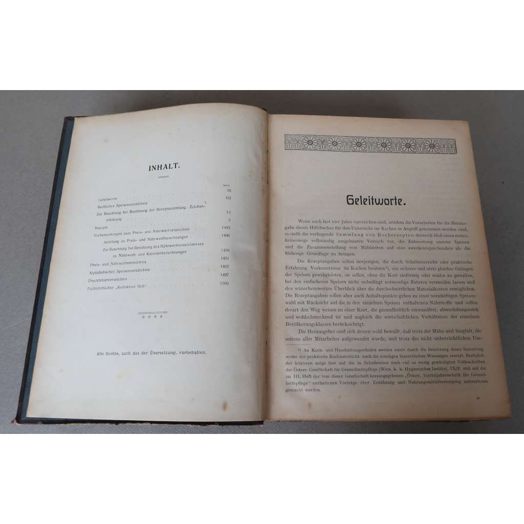 Wiener Küche: Sammlung von Kochrezepten der Bildungsanstalt für Koch- und Haushaultungsschullehrerinnen und der Kochschule der Gastwirte in Wien [kuchařka, vídeňská kuchyně, recepty z vídeňské odborné kuchařské školy, vaření]