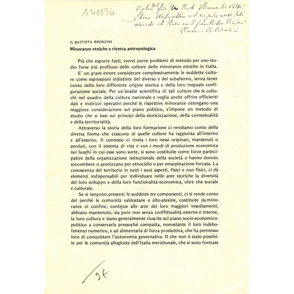 Minoranze etniche e Ricerca Antropologica ["Etnické menšiny a antropologický výzkum"; Itálie; dialektologie; podpis]