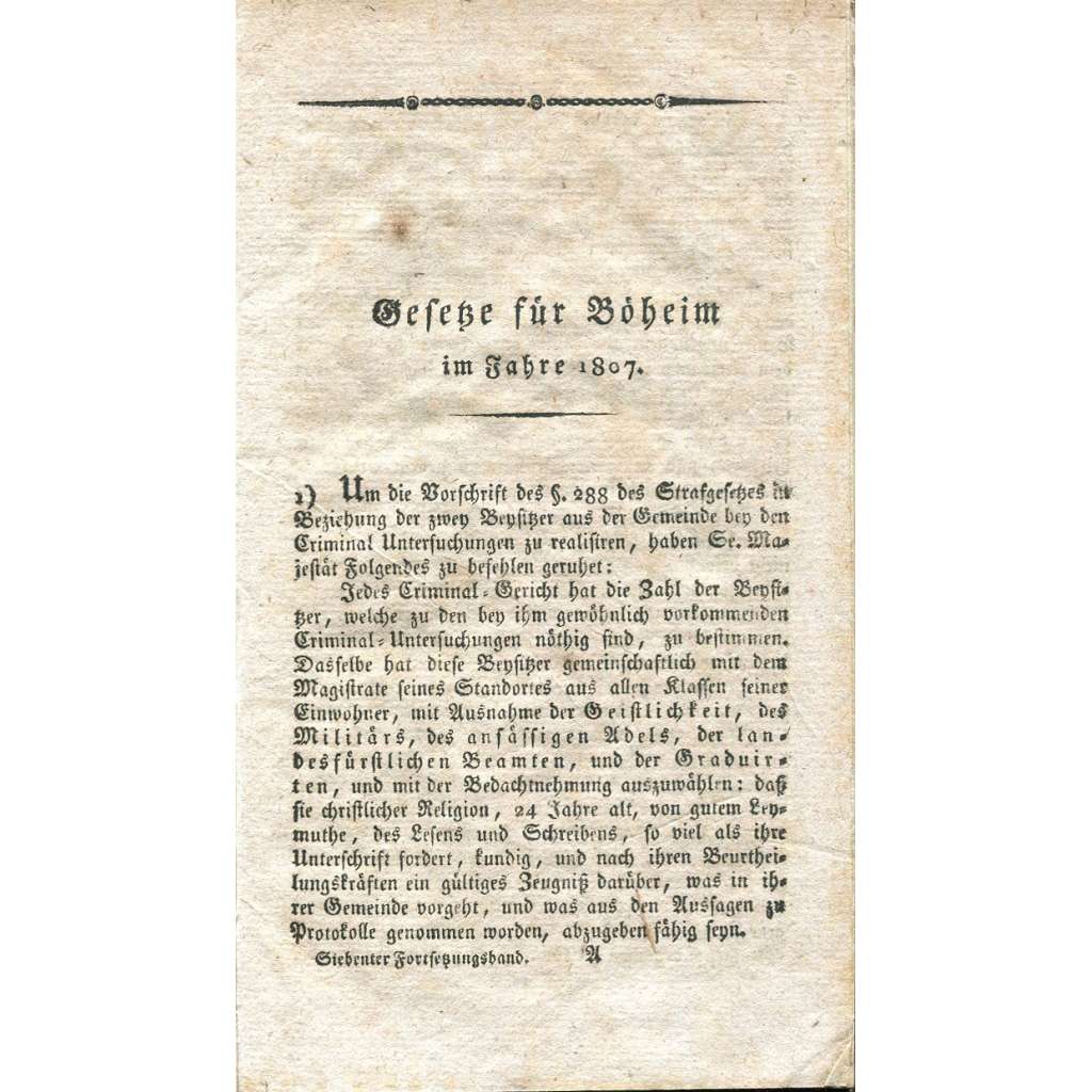 Sbírka všech nařízení a zákonů vyhlášených v českém království; šestý navazující svazek, který zahrnuje nařízení z roku 1807. Kniha obsahuje několik rozkládacích příloh.