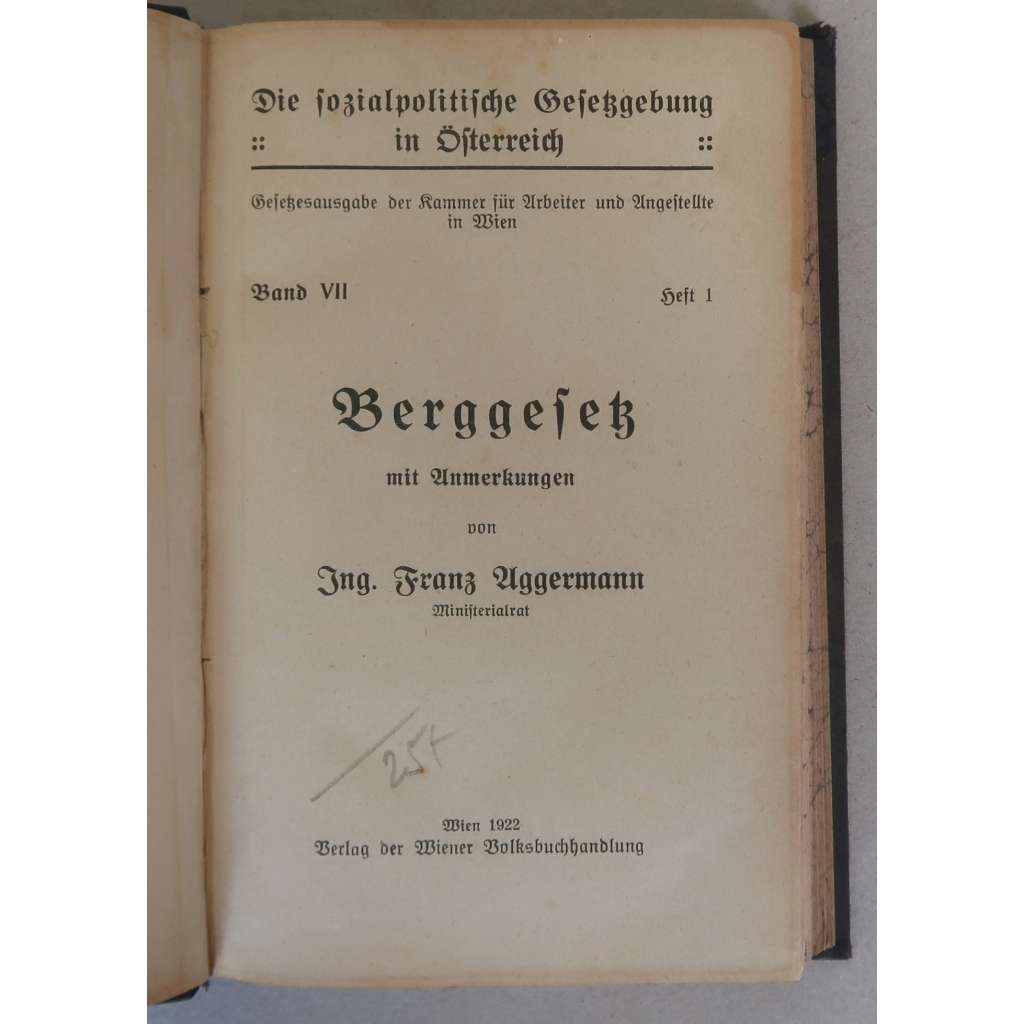 Die sozialpolitische Gesetzgebung in Österreich: Gesetzesausgabe der Kammer für Arbeiter und Angestellte in Wien; Band VII, Heft 1. Wien: Verlag der Wiener Volksbuchhandlung 1922.