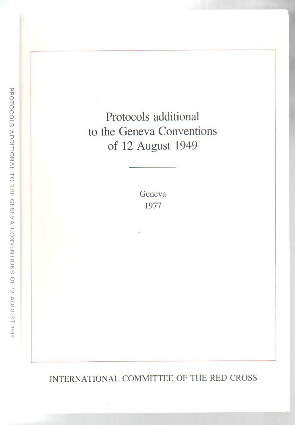 Geneva: International Committee of the Red Cross 1977. Pův. brožovaná vazba s titulem na hřbetu a přední desce, 124 stran, 4° (15,5 x 23 cm)