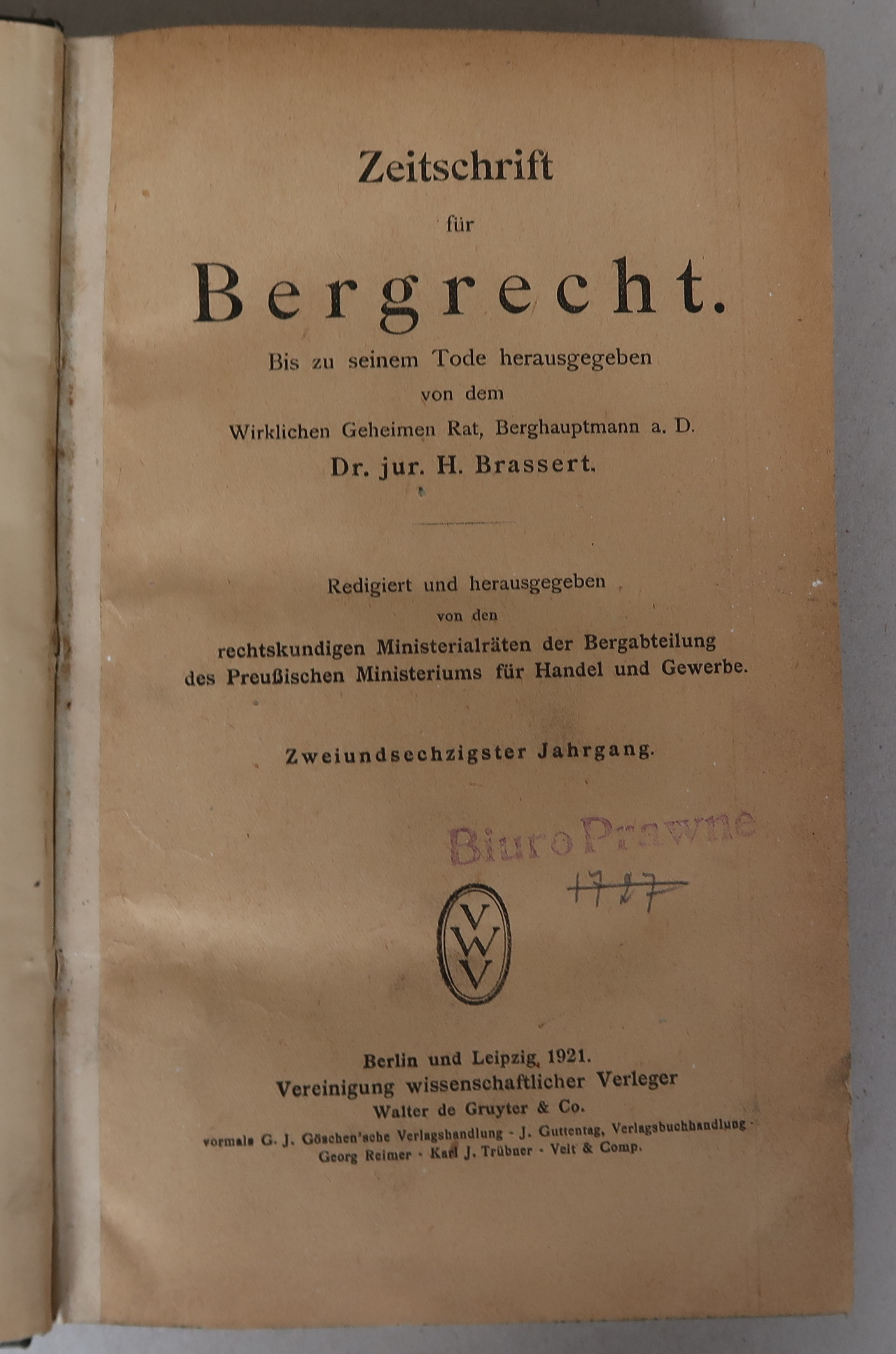 hřbet z poloviny chybí, okraje desek odřené, razítka a signatury na titulu, průběžně zahnědlé stránek a vyšisované okraje, celkově ale použitelný stav
