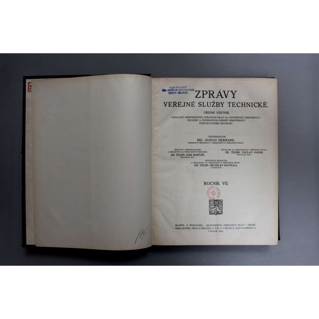 desky na krajích poněkud odřené, vymazaná razítka na titulním listu, průběžně lehce razítkovaná, jinak čistá, celkově dobrý stav