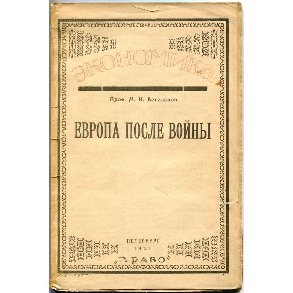 "Evropa posle vojny. Ekonomičeskij očerk" (Evropa po válce. Ekonomický esej); důkladný ekonomický rozbor ekonomické situace v Evropě po první světové válce; autorem je ruský ekonom Michail Ivanovič Bogolepov (1879–1945). Viz naskenovaný obsah.