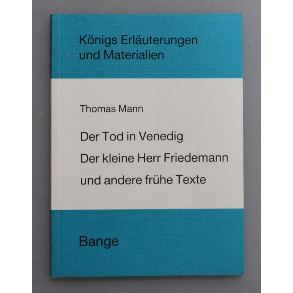 Der Tod in Venedig. Der kleine Herr Friedemann und andere frühe Texte (Smrt v Benátkách, studie, literární věda)