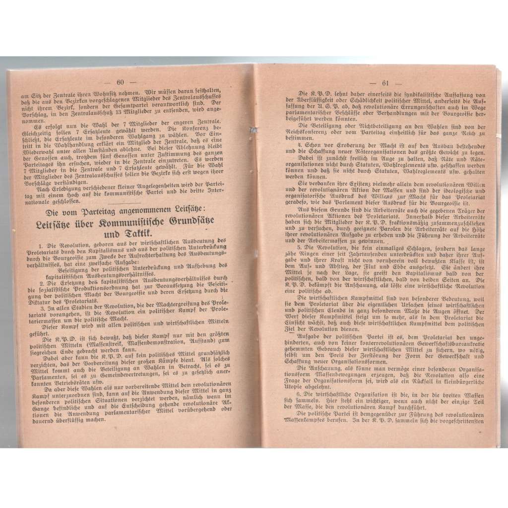 Vydání: Kommunistische Partei Deutschlands (Spartakusbund). 68 stran, 8° (13 x 20,5 cm), psáno frakturou