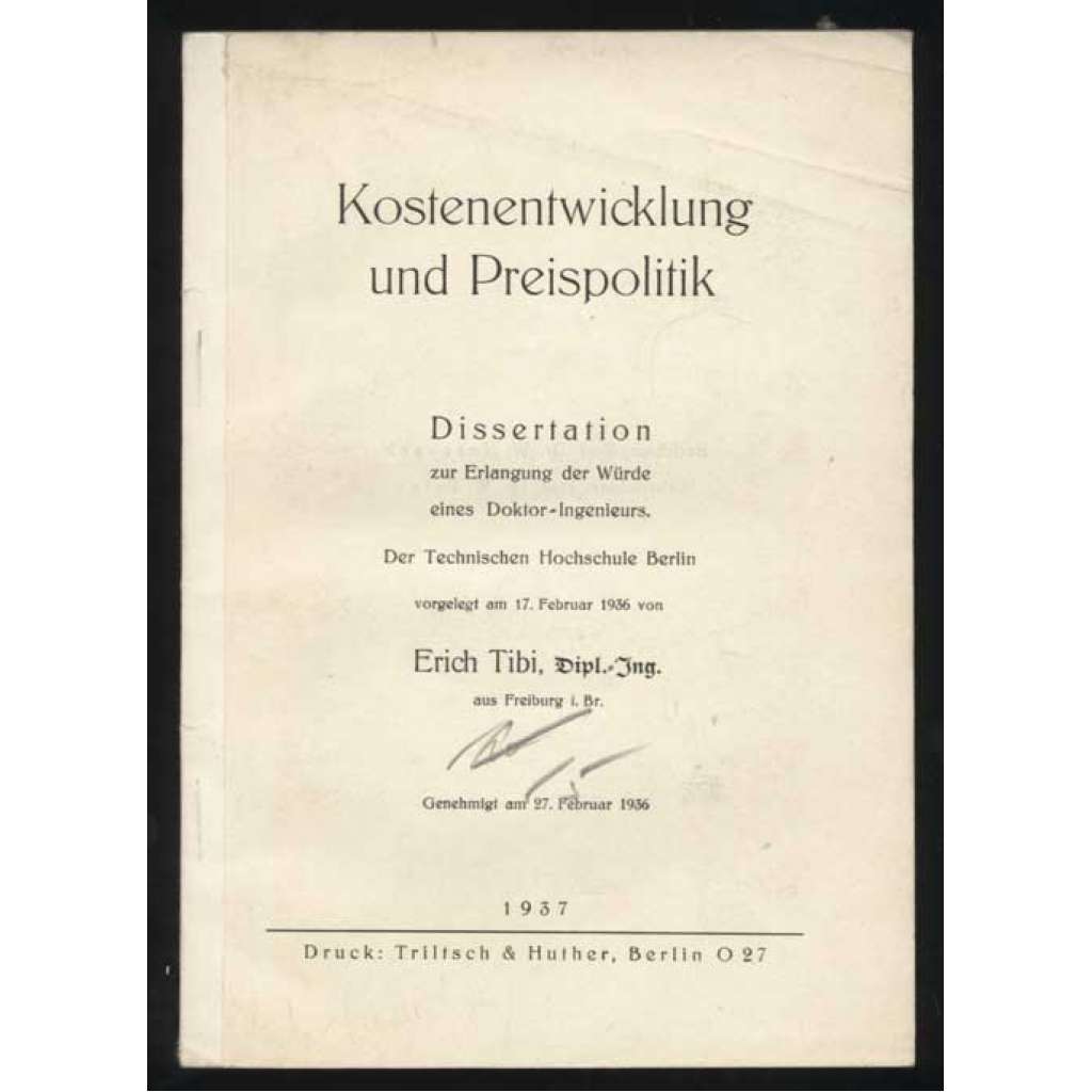 Kostenentwicklung und Preispolitik. Dissertation zur Erlangung der Würde eines Doktor-Ingenieurs der Technischen Hochschule Berlin, vorgelegt am 17. Februar 1936 [náklady, cenová politika, ekomie]