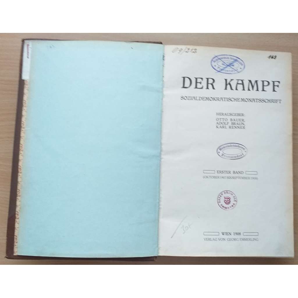 Der Kampf. Sozialdemokratische Monatsschrift; Erster Band (Oktober 1907 bis September 1908) [sociální demokracie]