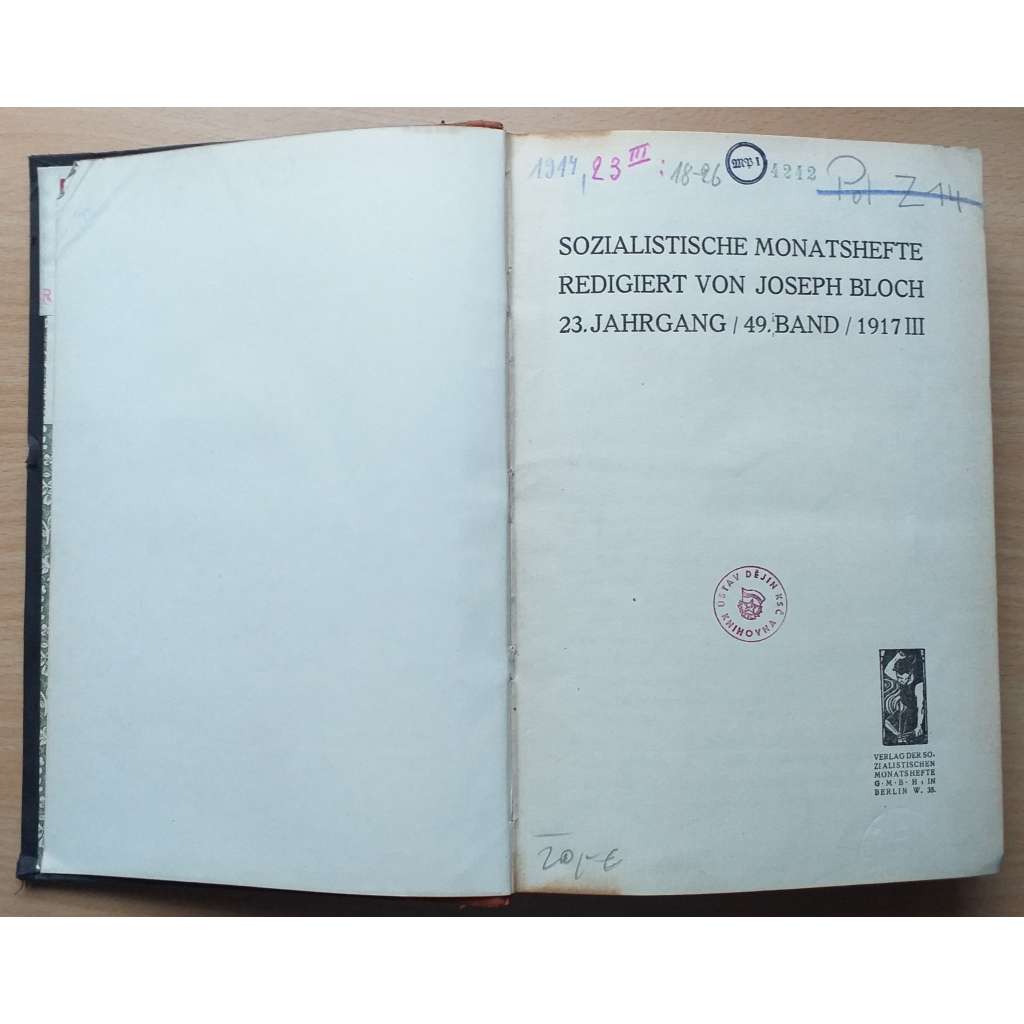 Sozialistische Monatshefte redigiert von Joseph Bloch; 23. Jahrgang 1917, 49. Band III, Hefte 18-26 [socialismus]