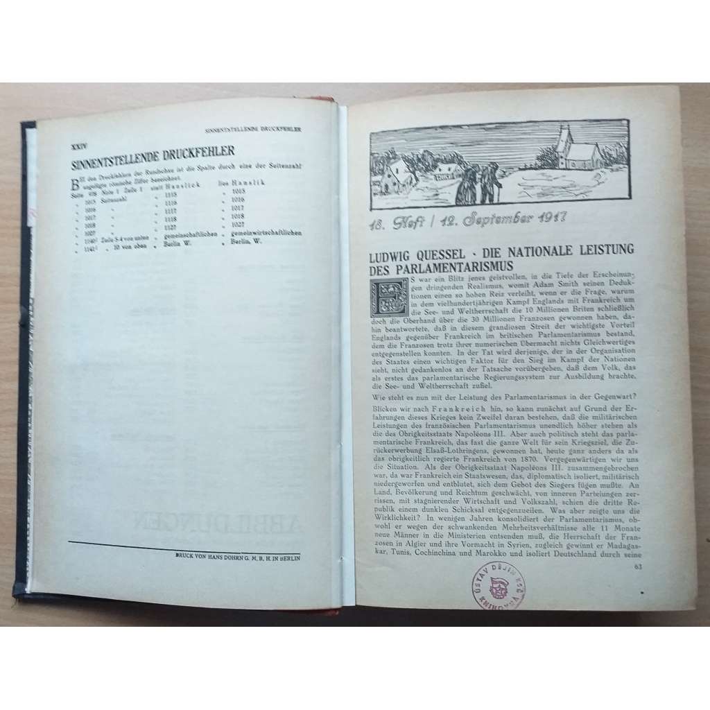 Vydání: Berlin: Verlag der Sozialistischen Monatshefte G.M.B.H. 1917. Pův. polokožená vazba se zdobenou ořízkou a předsádkou, na předsádce s malým štítkem knihkupectví, strany XX-XXIV+907-1314 s černobílými obr., 4° (16 x 24 cm)