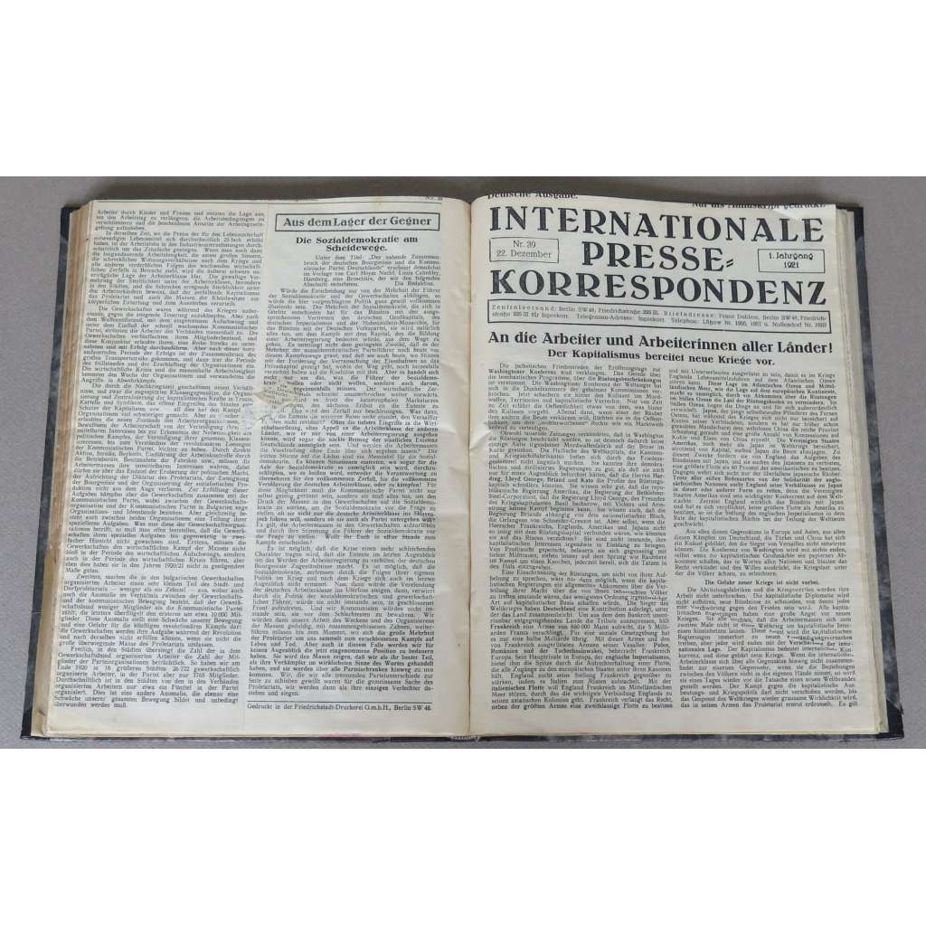 První ročník mezinárodní tiskové služby Komunistické internacionály. Zahrnuje čísla od 27. 9. 1921 (č. 2) to 31. 12. 1921 (č. 43); chybí č. 1.