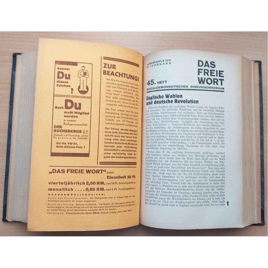 Das Freie Wort. Sozialdemokratisches Diskussionsorgan; Jahrg. 1931, 2. Halbjahr, Hefte 30-36, 40-52 [sociální demokracie]