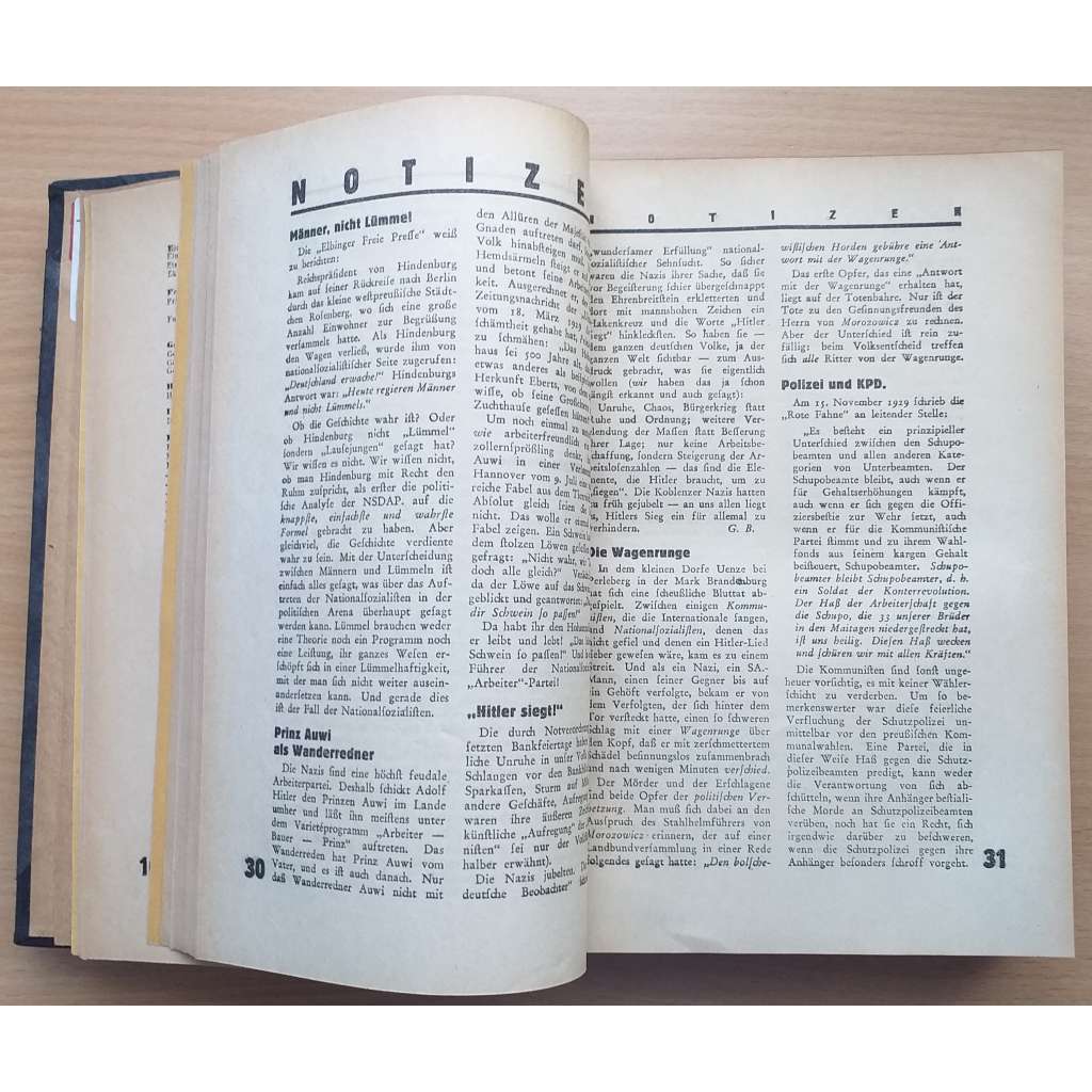 Diskusní fórum sociální demokracie, s obsahem druhého pololetí 1931. Ruský národní bolševismus, kritika Sovětského svazu a Stalina, internacionála, třídní boj, bankovní krach a stát, odbory, zákoník práce, pracovní doba, hospodářská krize, krize mezinárodní politiky centrálních bank, komunistický teror, každodenní boj proti fašistické hrozbě, revoluce zprava nebo zleva?
