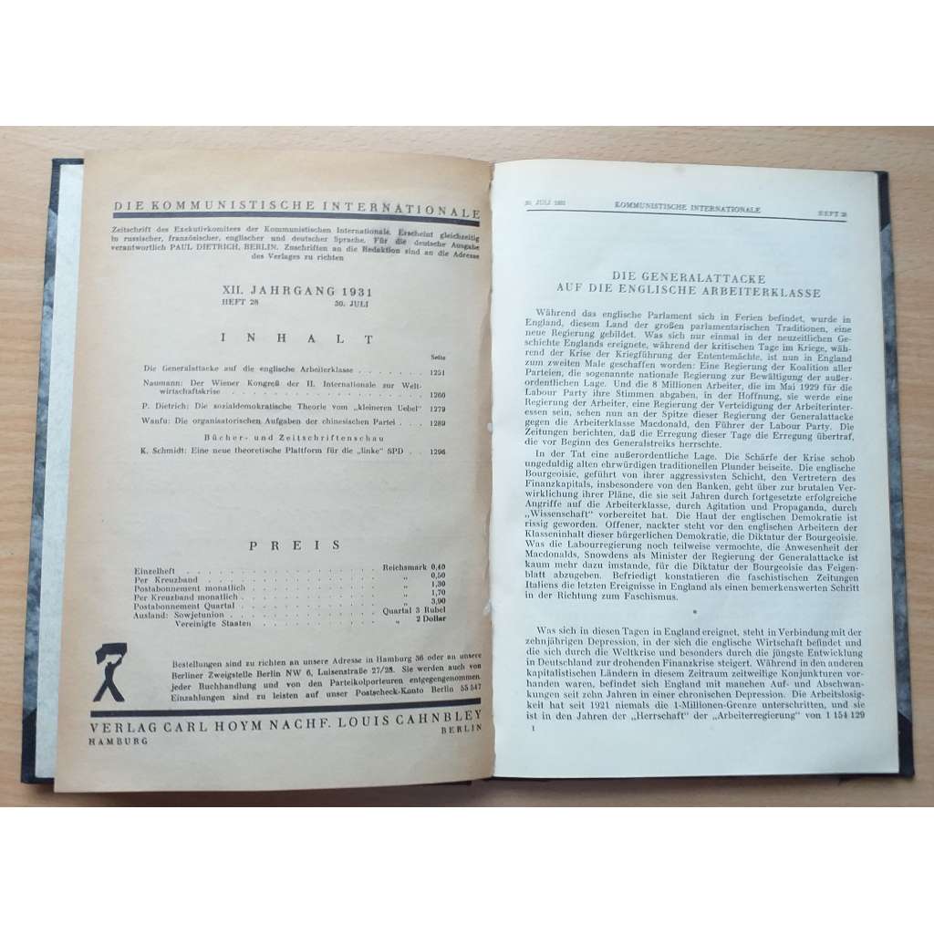 Časopis výkonného výboru Komunistické internacionály. Útok na anglickou dělnickou třídu, kongres II. internacionály ke světové hospodářské krizi, sociálnědemokratická teorie „menšího zla“, nová teoretická platforma pro „levicovou“ SPD
