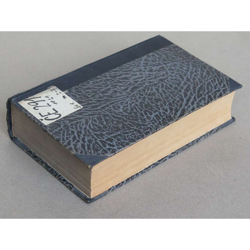 Stav knihy: Dobrý stav; desky opotřebované, papírový pokryv i plátno s natržením, na zadní desce je nalepen papírový štítek, předsádky trochu zaprášené, s razítky a pár poznámkami psanými perem, horní růžek přední předsádky ustřižený, dvě strany s razítkem knihovny.