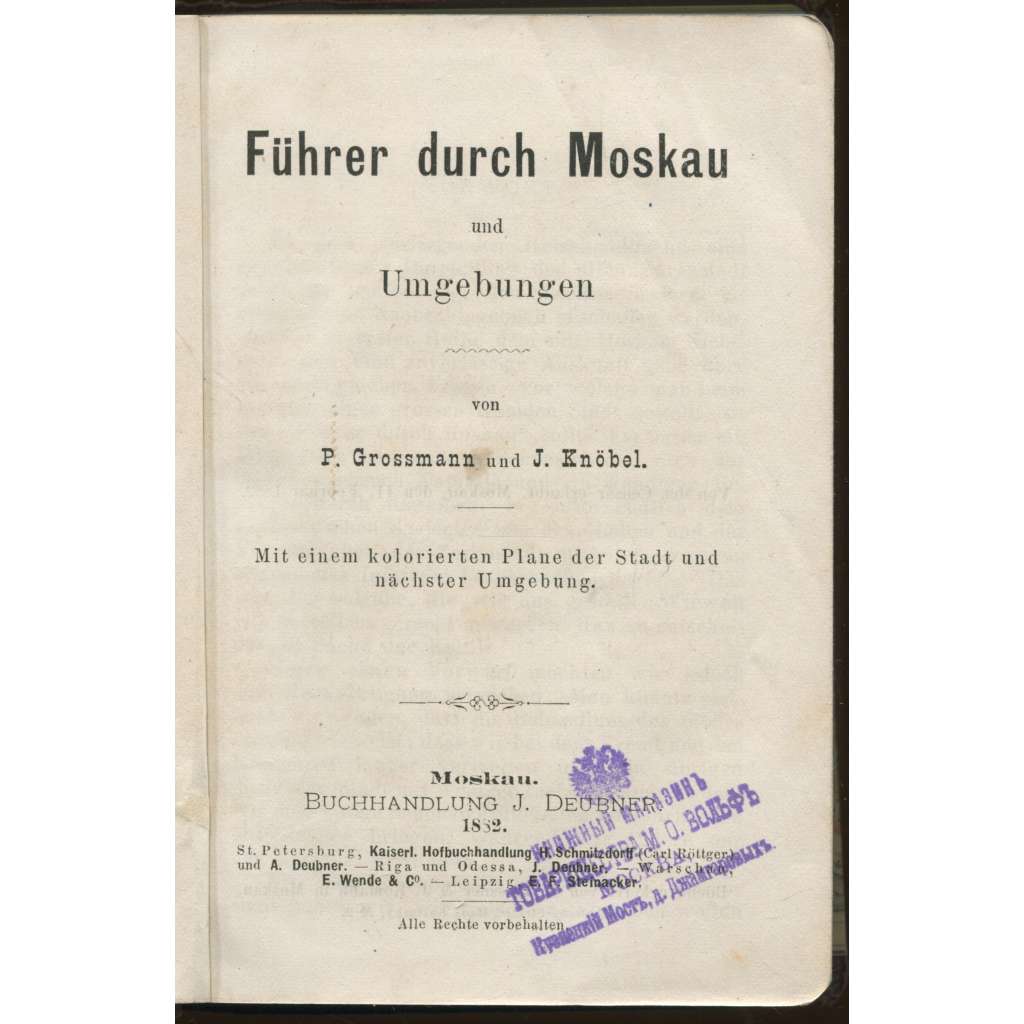 Führer durch Moskau und Umgebungen. Mit einem kolorierten Plane der Stadt und nächster Umgebung [Moskva, průvodce, místopis, bedekr]