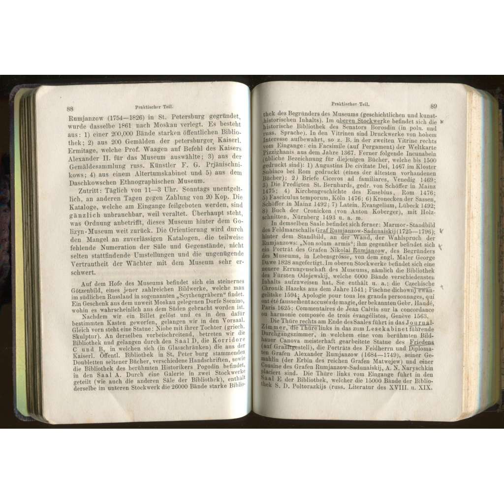 Vydání: Moskau: Buchhandlung J. Deubner 1882, pův. celoplátěná vazba se slepotiskem a zlacenou ražbou, VIII+263+76 stran s reklamou, 12° (11 x 16 cm)