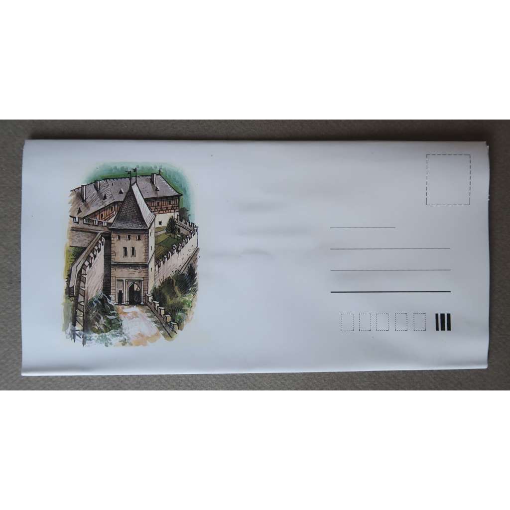Rozkládací pohlednice s prostorovou vyklápěcí (pop-up) ilustrací, 21 x 11 cm.