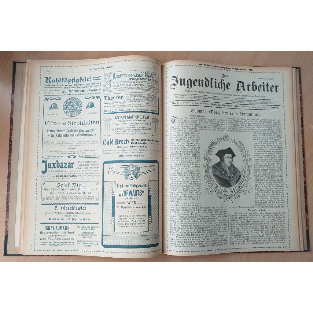 Časopis Říšského svazu sdružení mladých dělníků Rakouska. Mládežnické organizace, hnutí mladých dělníků, odbory, vzdělávání, parlament mládeže, kultura, biografie – Wilhelm Liebknecht, Heinrich Pestalozzi, Ferdinand Lassalle, revoluce a vojsko