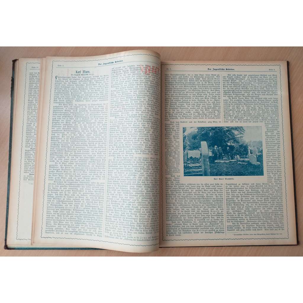 Časopis Říšského svazu sdružení mladých dělníků Rakouska. Sdružení mládeže, biografie – Richard Wagner, Wilhelm Weitling a Karl Marx, marxismus a etika, odbory, reforma odborného školství, ochrana učňů, mládežnické organizace a militarismus