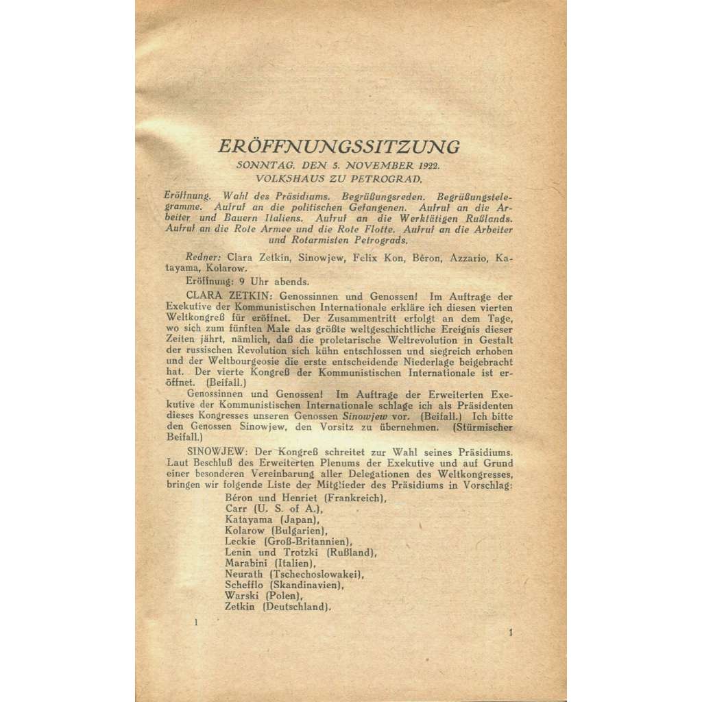 Protokoll des Vierten Kongresses der Kommunistischen Internationale [1922; komunismus; Kominterna; Komunistická internacionála]