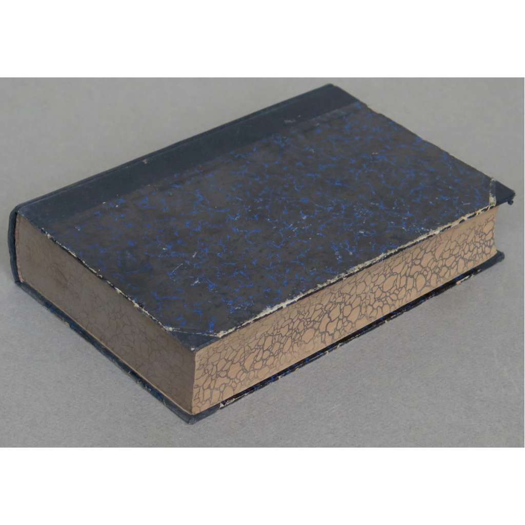 Stav knihy: Dobrý stav; desky opotřebované, ořízka a stránky zažloutlé, na přední předsádce je pár poznámek psaných tužkou a setřený podpis, na původní obálce je podpis majitele, titulní list chybí.