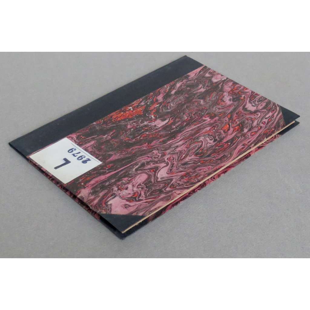 Stav knihy: Dobrý stav; na původní obálce jsou razítka, signatury a vybledlá skvrna od vlhkosti, stránky zažloutlé, na dvou stránkách je razítko knihovny.