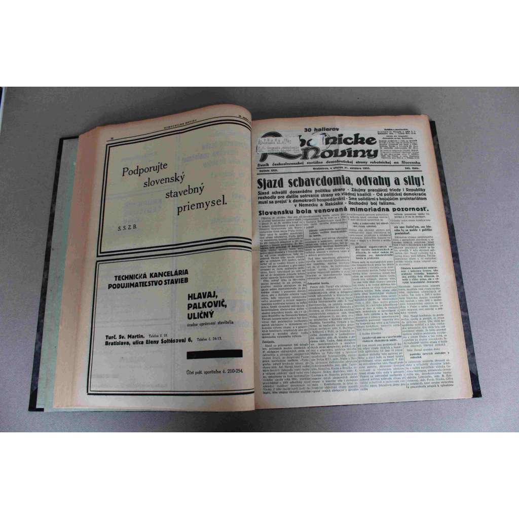 Robotnické noviny 1933, roč. XXX. (říjen-prosinec) (noviny, deník, první republika, Slovensko, mj. T. G. Masaryk o probléme Demokracia a diktatúra, Atentát na Dollfussa, Demokracia sa musí bránit, Nemecká sopka [Hitler], Antonín Švehla zomrel)
